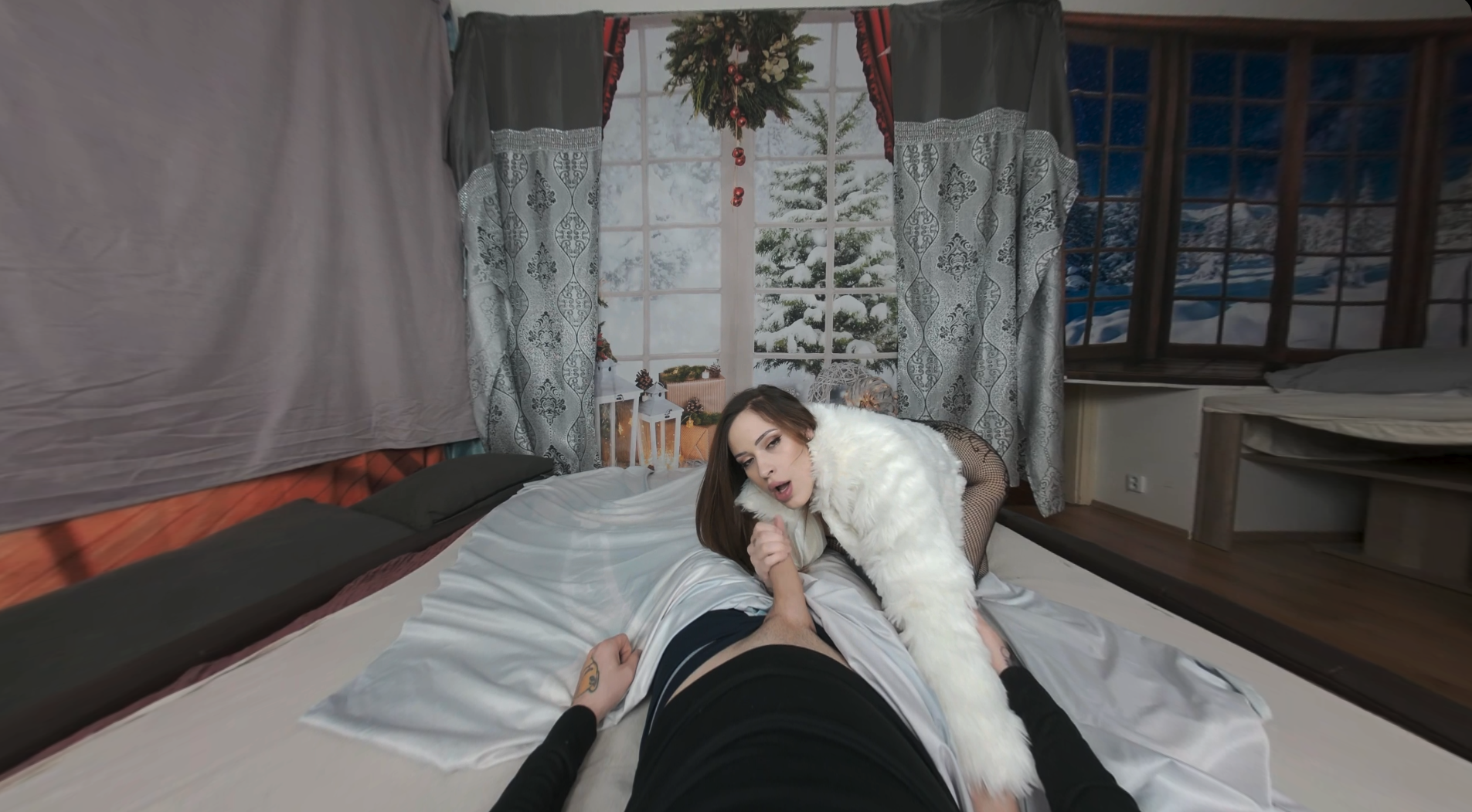 Ria Sunn returns to the world of virtual reality to keep you warm on a cold, snowy day in this sensual POVCentralVR episode. Clad in a fur coat, bodystocking, and heels, she sucks you hard and then fucks you in four positions. After she swallows your cum, she lies down to relax with you in post-coital bliss.