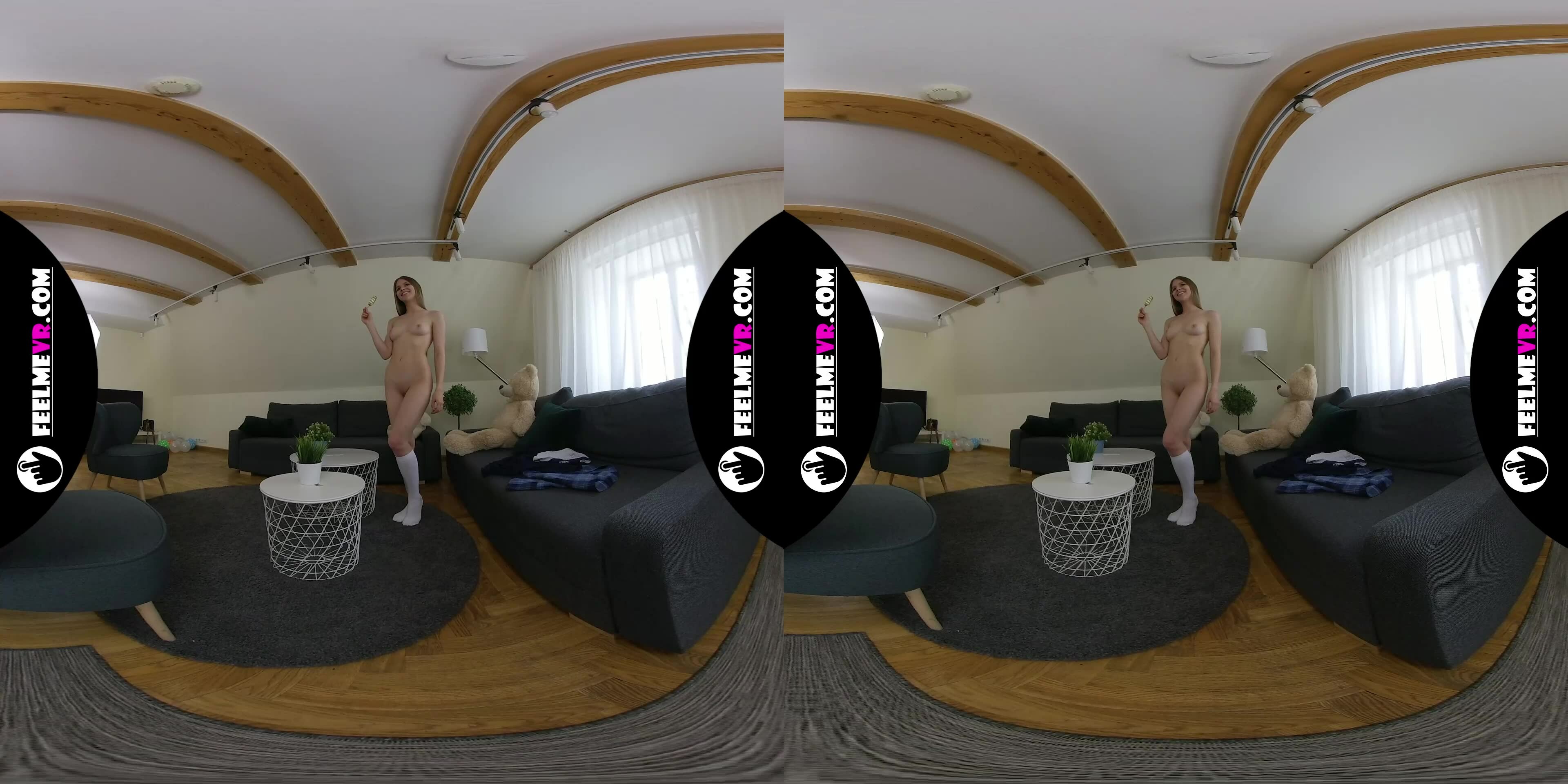 **FeelmeVR's stunning 8K resolution and 60 FPS frame rate capture every detail of this intimate encounter. Binaural sound technology transports you to the scene, making you feel like you're right there with Evelina.