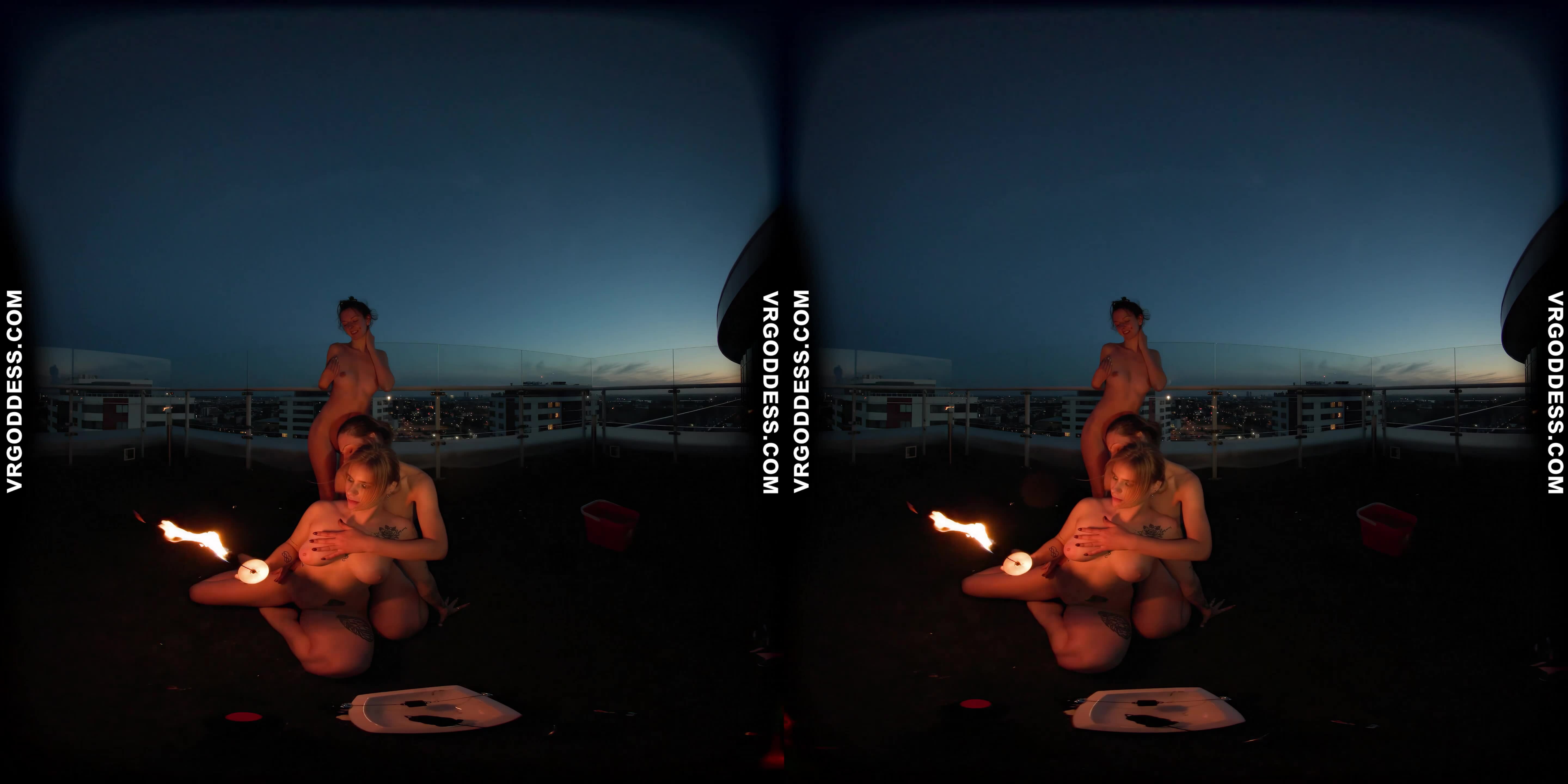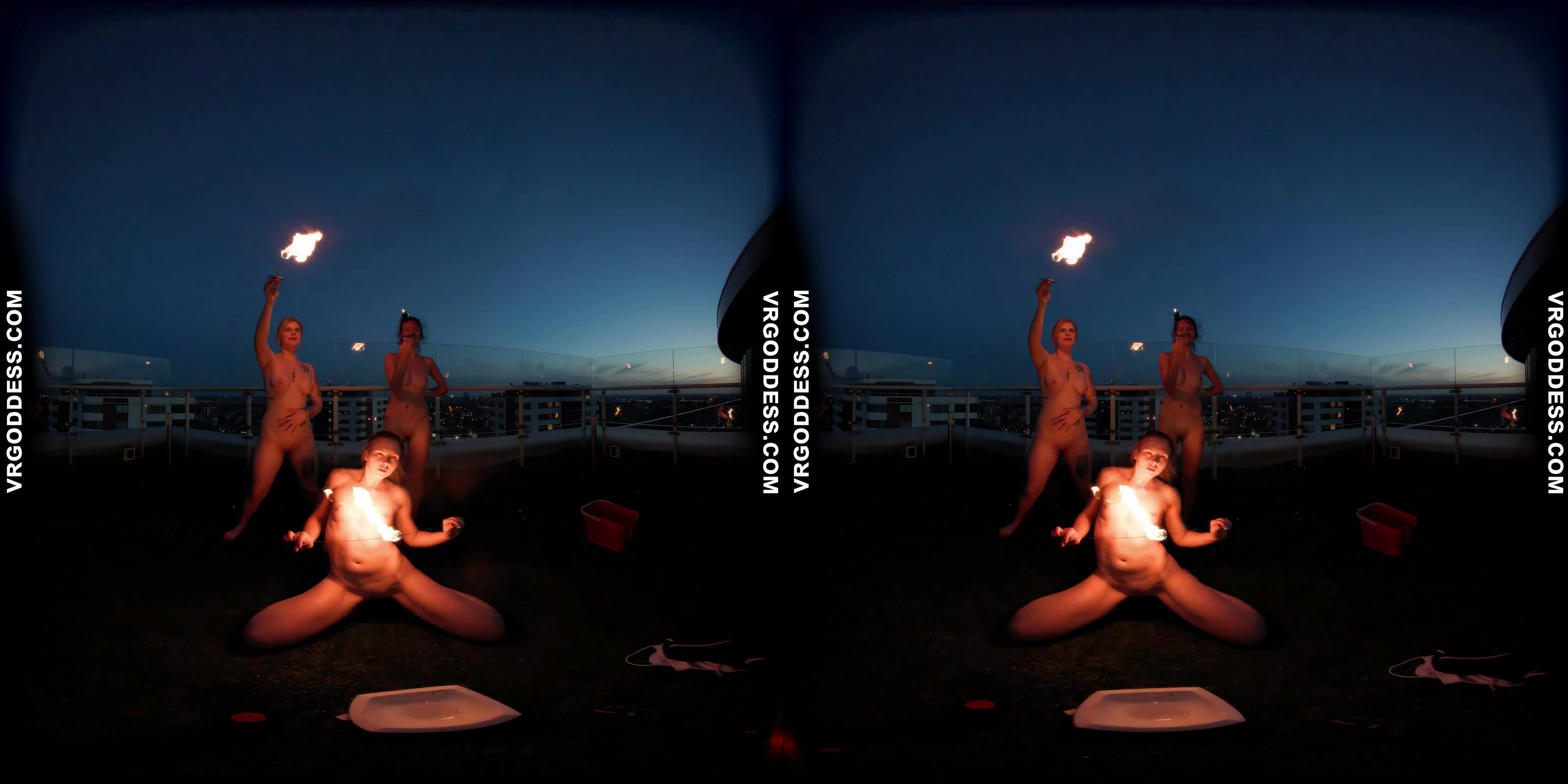Rooftop Fire Dance with Lea and Melonie in 8K VR