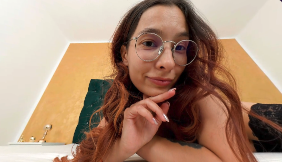 Submit to the irresistible commands of Rosse as this stunning Romanian brunette goddess turns her bedroom into your personal voyeur paradise in breathtaking 8K VR. From the moment she appears on screen, perched in sheer lingerie and stockings that hug her curvy frame, her glasses perched on her nose adding that naughty secretary vibe, you're captivated. Her long brunette locks cascade over her shoulders as she locks eyes and starts with teasing dirty talk, whispering "come closer... lick my pussy for me" in that sultry accent that instantly makes you throb. She runs her hands over her perfect natural big tits, pinching her nipples until they harden under the fabric, her breath quickening while she dips lower to trace her shaved pussy through the lingerie.