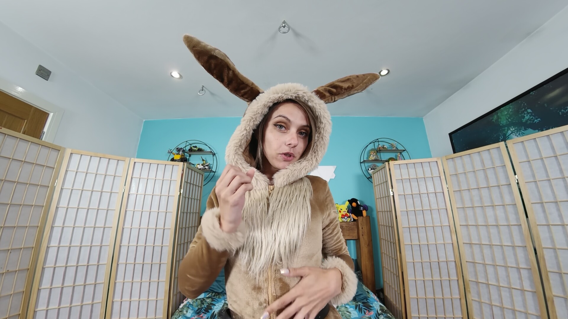 The way she kicks things off with those sultry whispers, guiding you through every move, builds this crazy tension. It’s like she’s right there with ya, ya know? When she gets into the solo teasing action, slowly peeling off bits of her costume, the excitement just ramps up. Her eye contact through the screen—damn, it feels so real, almost like a personal convo.