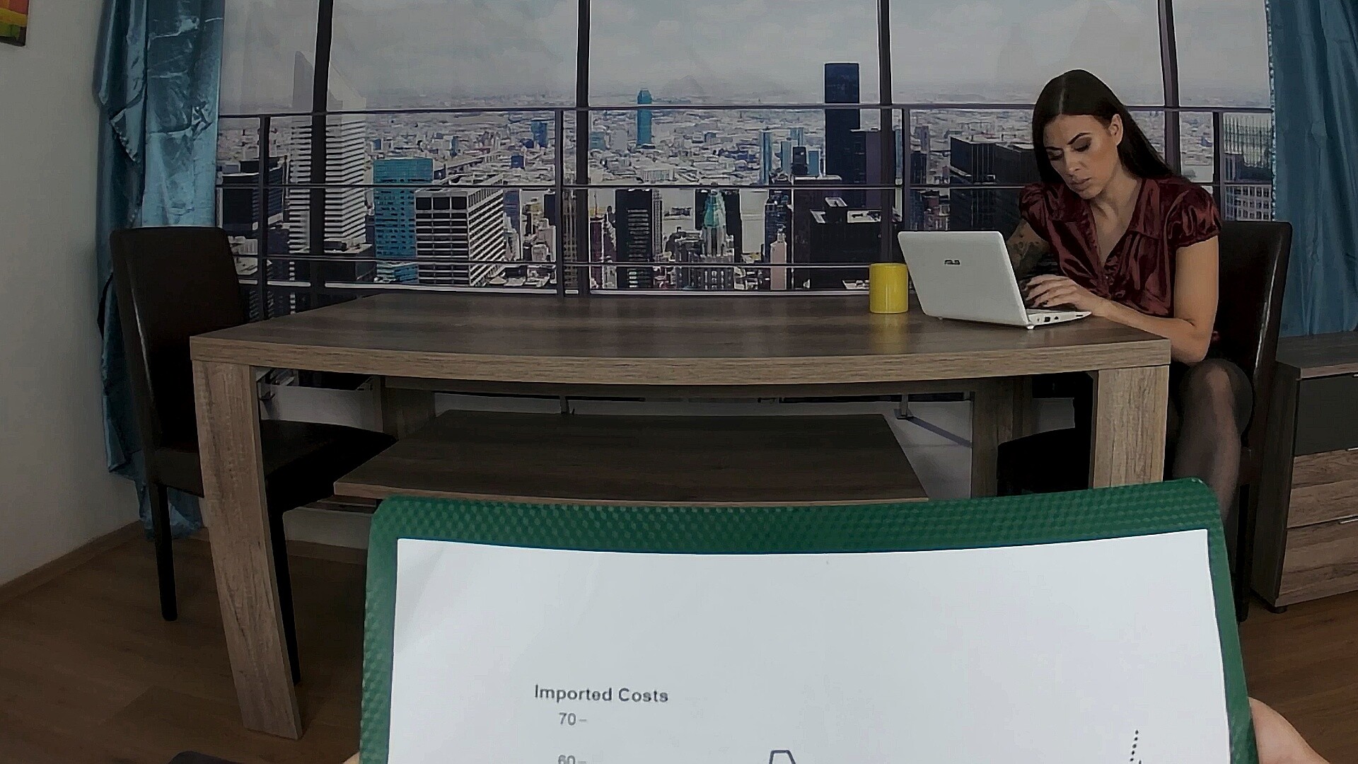 Things heat up quick when she locks eyes with you through that immersive VR lens. The way she teases during the cowgirl moment? Absolute fire—her energy just pulls you in deeper. Then, flipping to reverse cowgirl, the intensity ramps up; her movements are so fluid, it’s like a damn dance. And don’t even get me started on the doggystyle scene over the desk—pure, raw passion that hits hard.