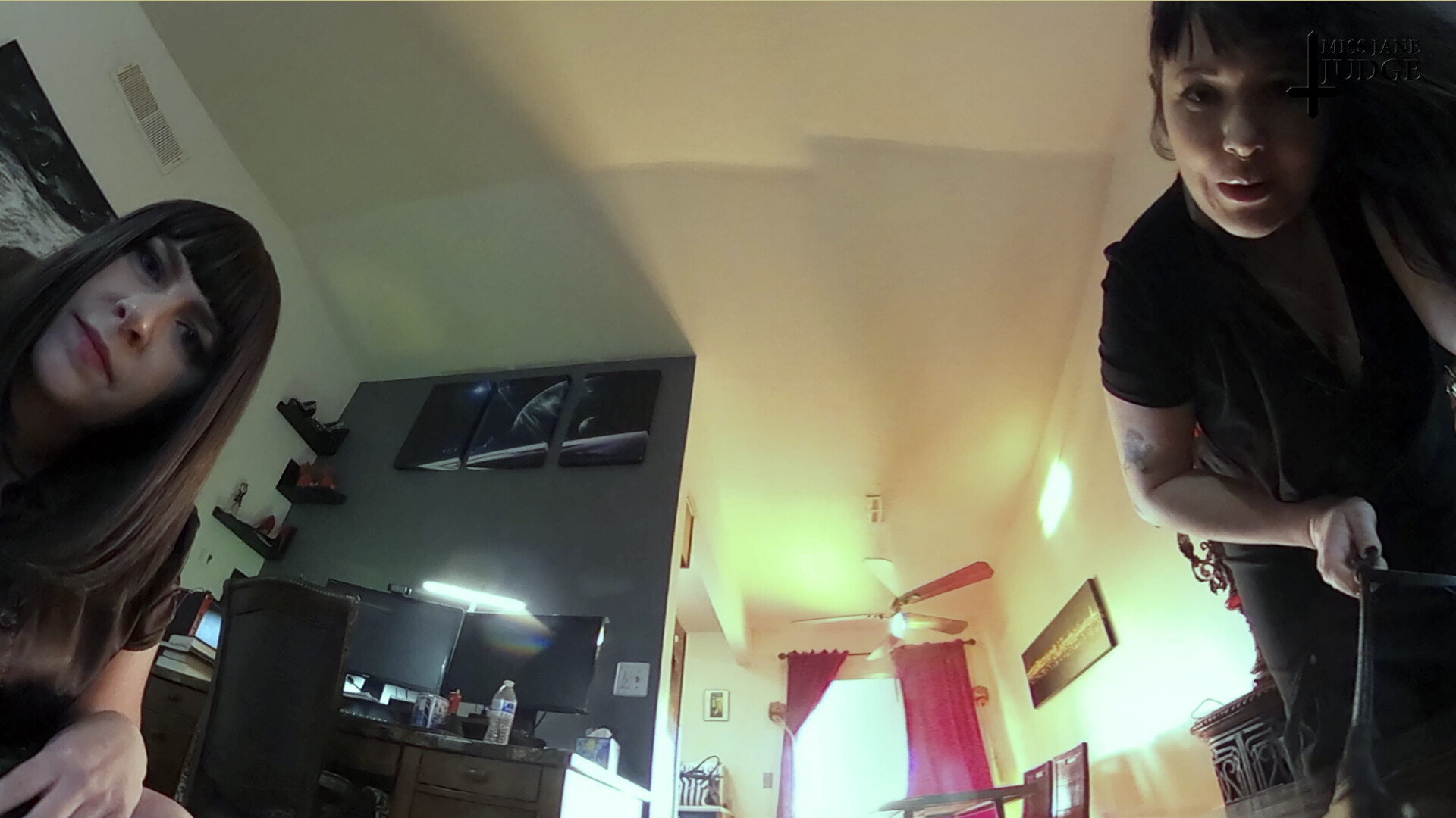Man, I gotta tell ya, diving into this VR scene with Jane Judge and Lita Lecherous is somethin’ else! These two goth dominatrixes tower over their tiny client, and the size humiliation kicks in right from the start. You feel the power dynamics instantly, like you’re right there, caught in their commanding presence.