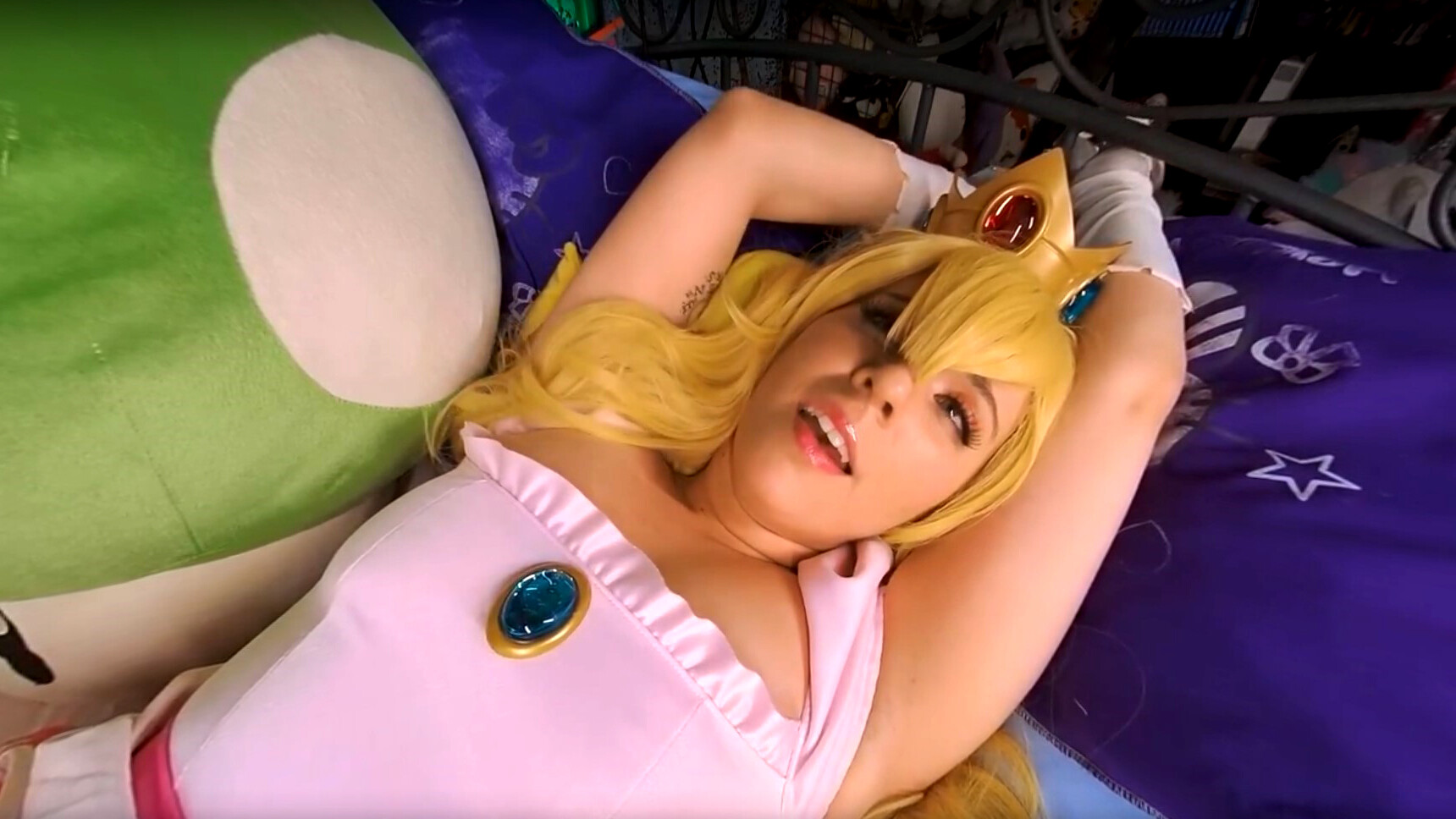 Get ready to indulge in a royal treatment with [Lumlumxx] as she takes on the role of Princess Peach. This stunning blonde beauty is dressed to impress in a tight-fitting mini-dress, showcasing her toned physique and striking features. As you immerse yourself in this 8K VR experience, you'll feel like royalty alongside Princess Peach.