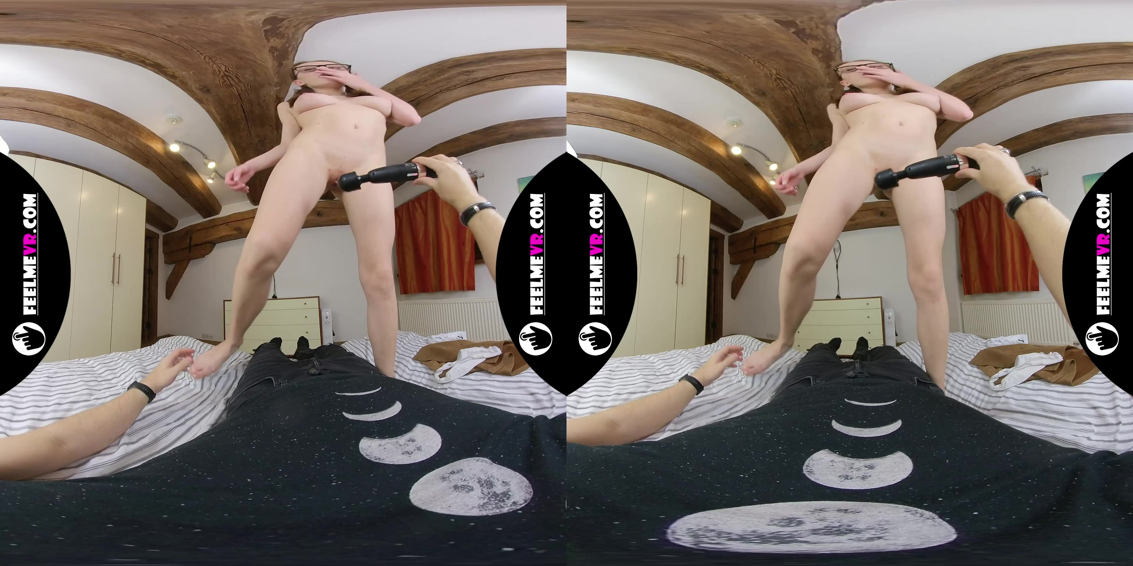 VR180 Video, Busty Lina Masturbates With Vibrator On Man