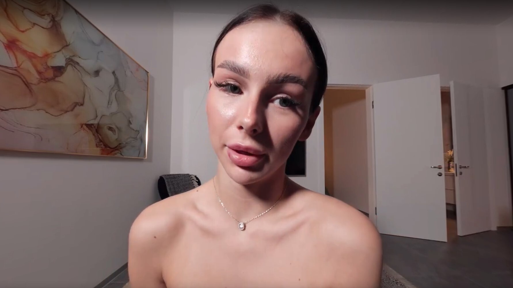 The heat cranks up as she dives into fingering, her fingers dancing over her shaved curves, moans filling the binaural sound that makes it feel super real—honestly, it's absolutly mesmerizing how her body quivers, pulling you deeper into that emotional spiral of lust.