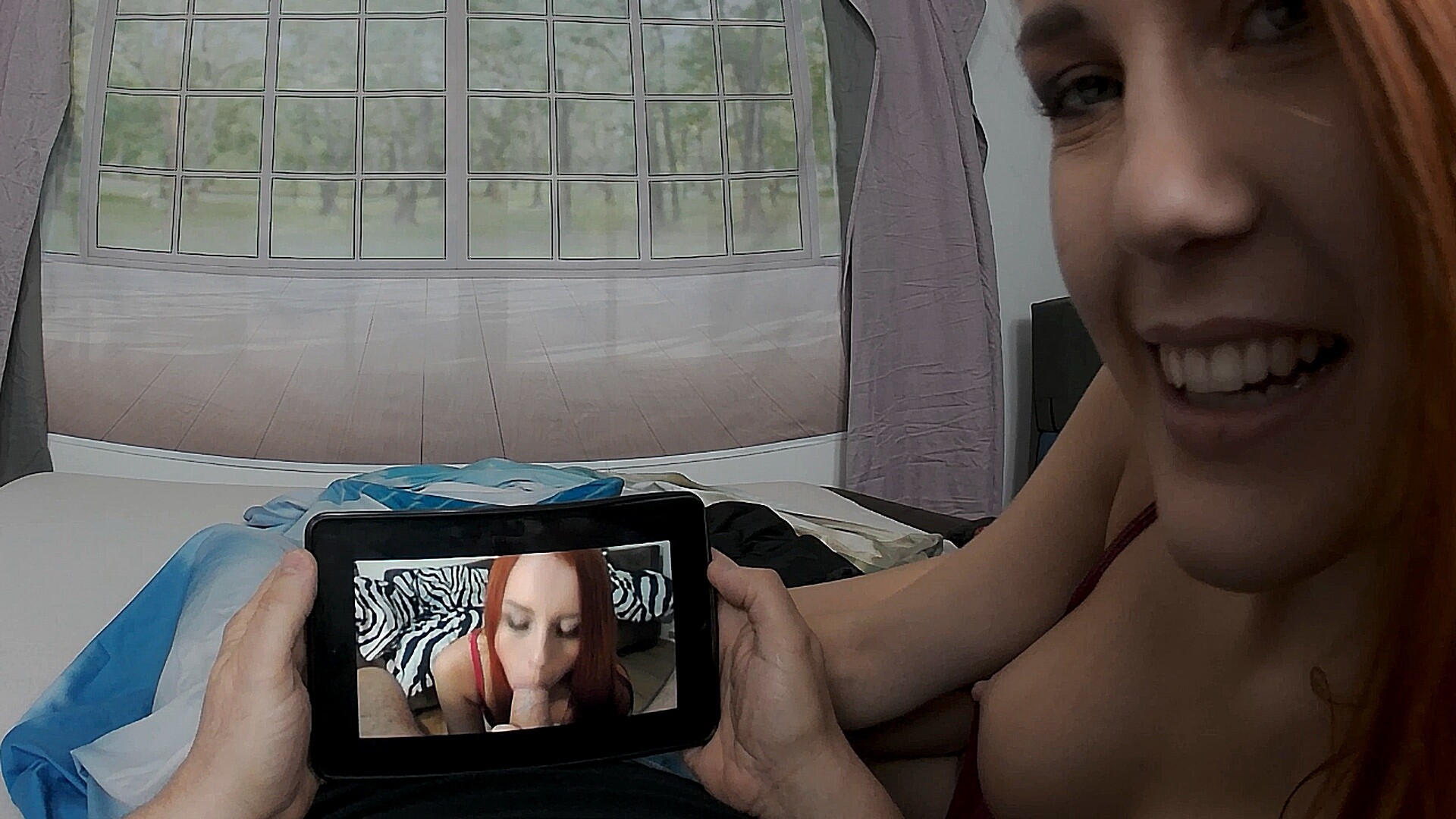 Man, I gotta tell ya, diving into this VR scene with Charlie Red is like stepping into a whole other world. Right from the start, her fiery red hair and that sheer bodystocking hugging every curve had me hooked. I mean, the way she looks at you through the lens, it’s like she’s right there, teasing with every move.